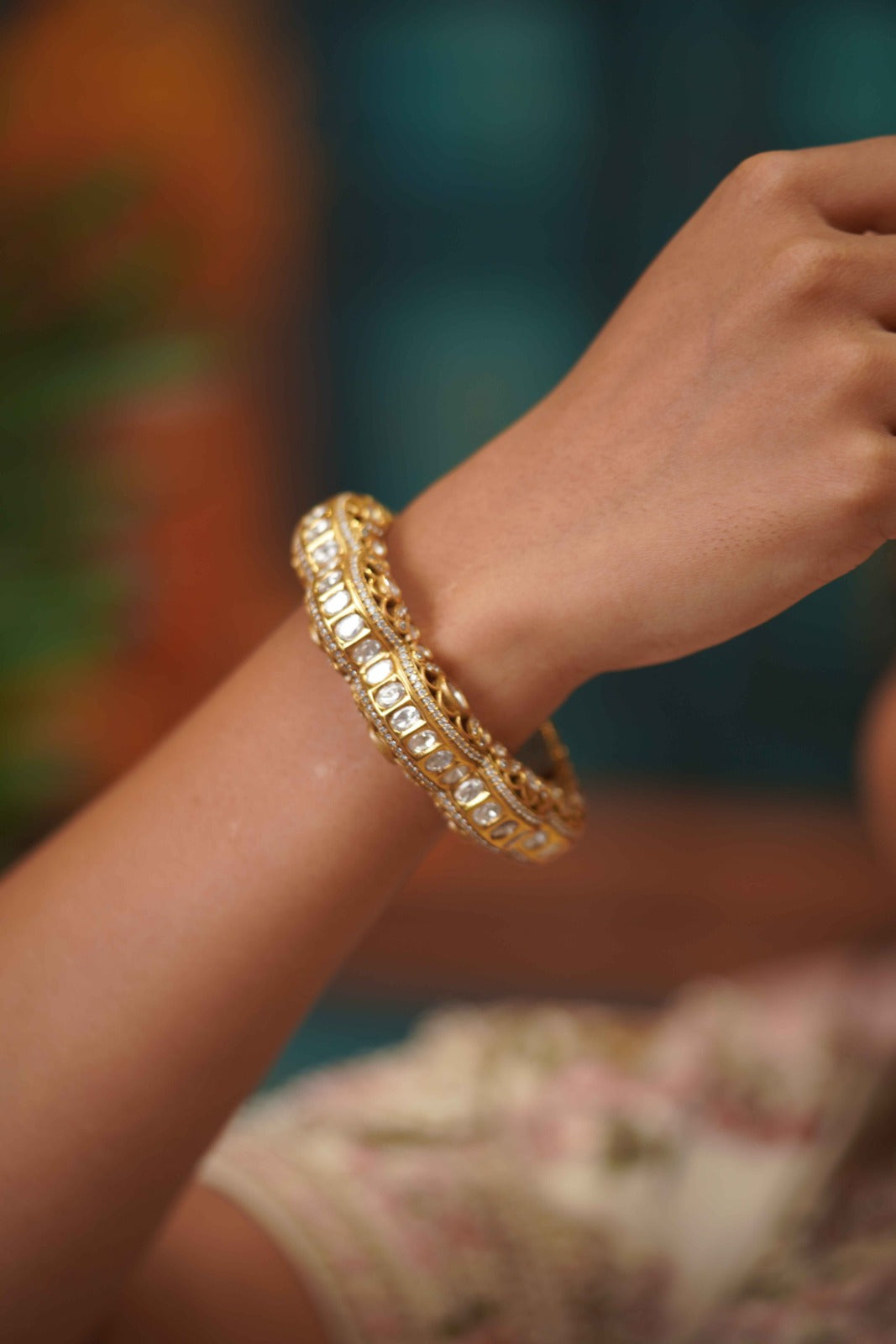 A modern design with a traditional flair we bring to you Lykaa. Pretty and elevating kada that looks sturdy and solid, rich and elevating. The kind of kada which will last you forever, and look gleaming and gorgeous  each time.