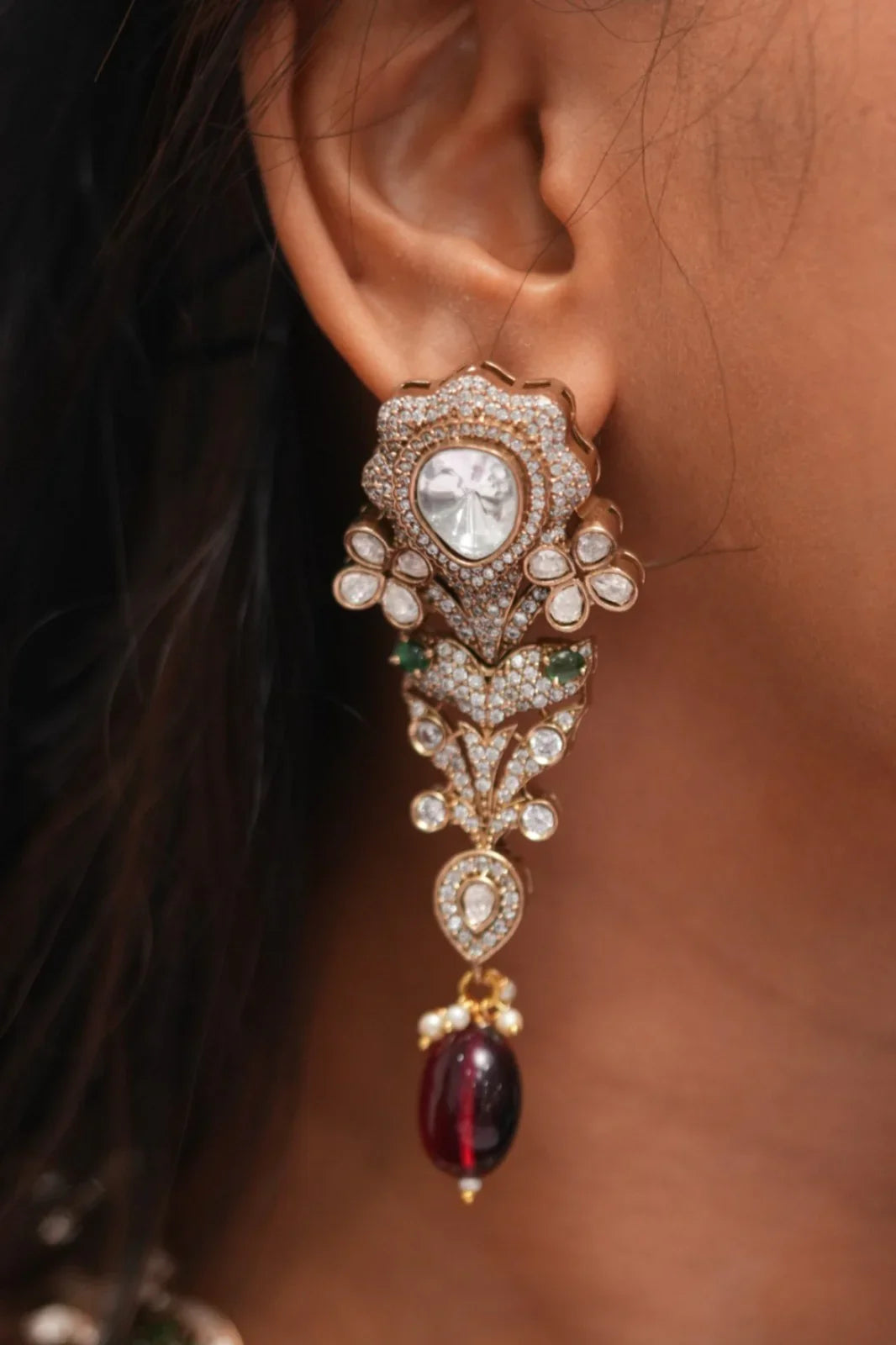 Their diamond jhumkas are such good quality. The setting is heavy and solid. The diamonds are clear and sparkly after weeks of wear. Worth every penny for statement earrings that last! Thank you Attrangi