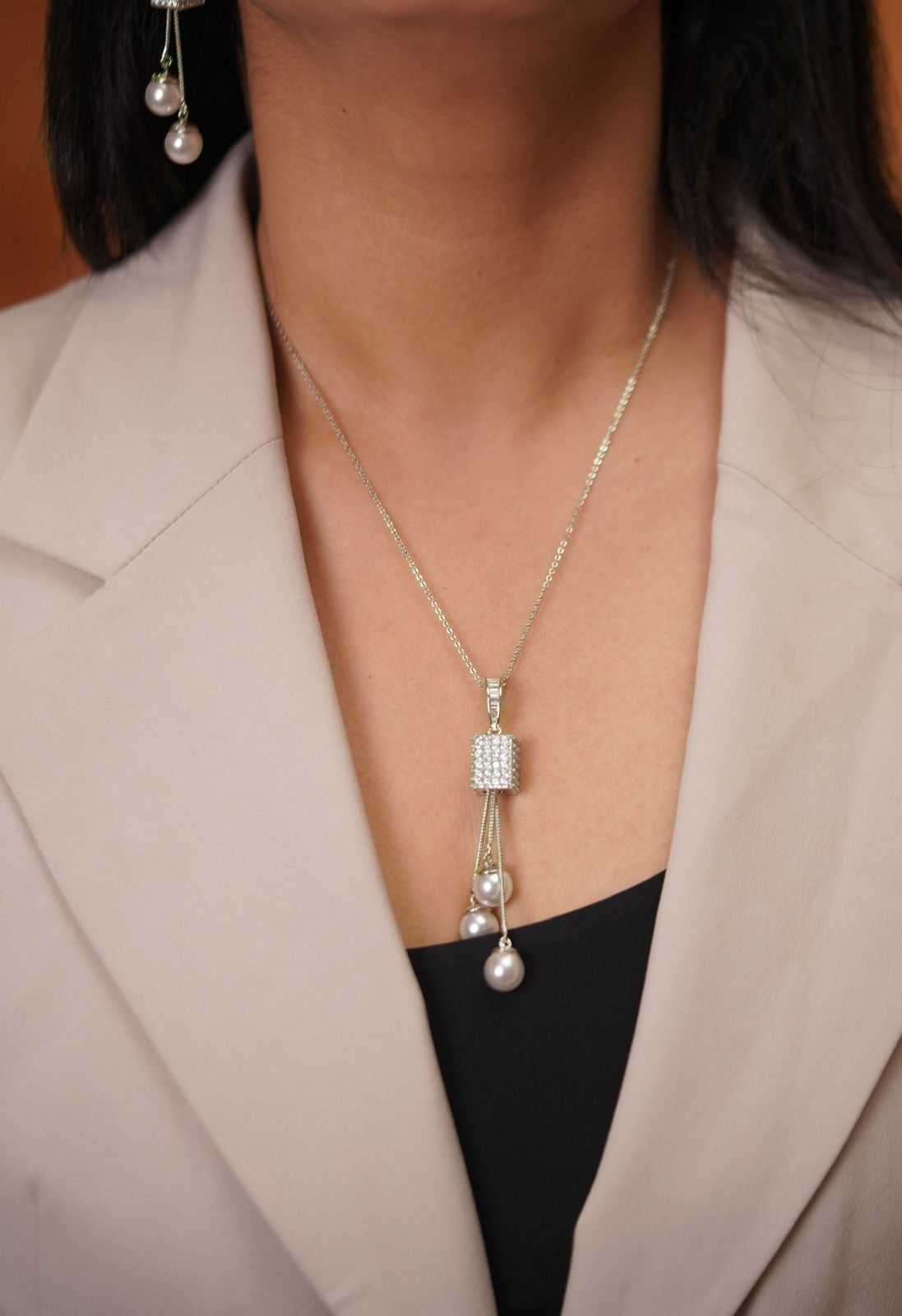 Monica Diamond Pearl Pendant Set