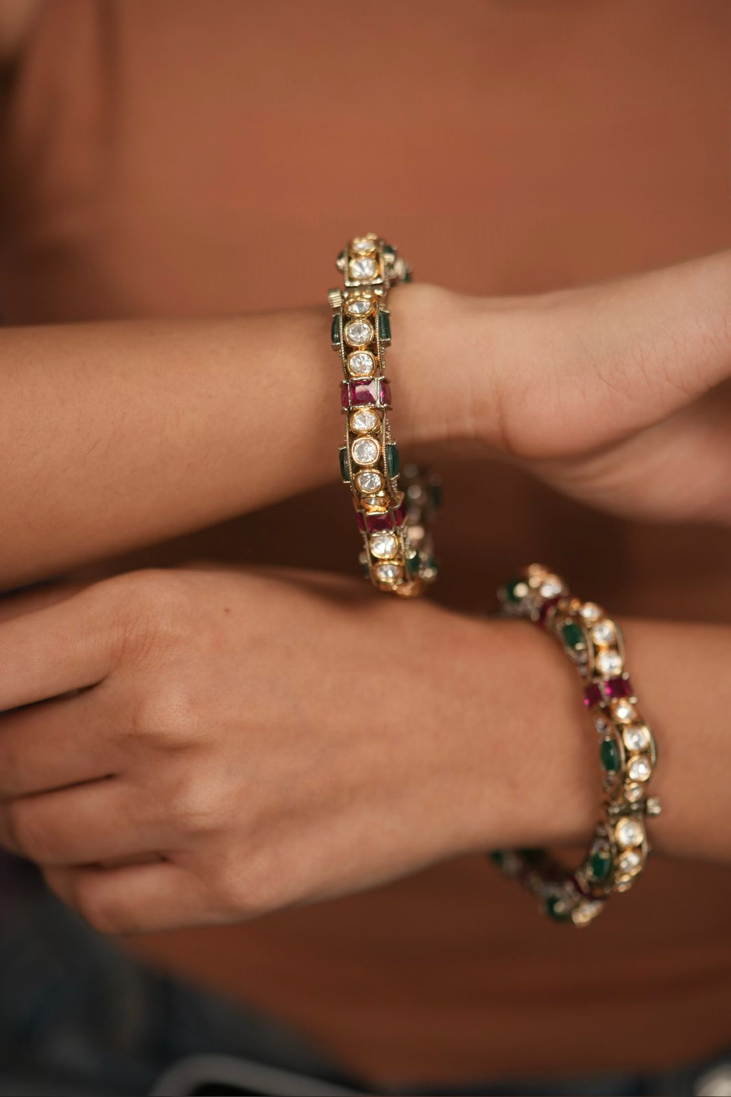 Samohar Moissanite Polki Gajra Pacheli Indian Kada Set | Ruby Green