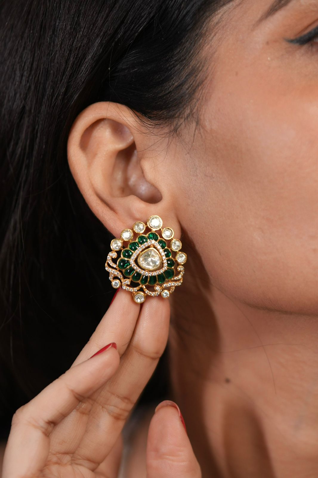 Shubhi Polki Moissanite Meenakari Uncut diamond studs