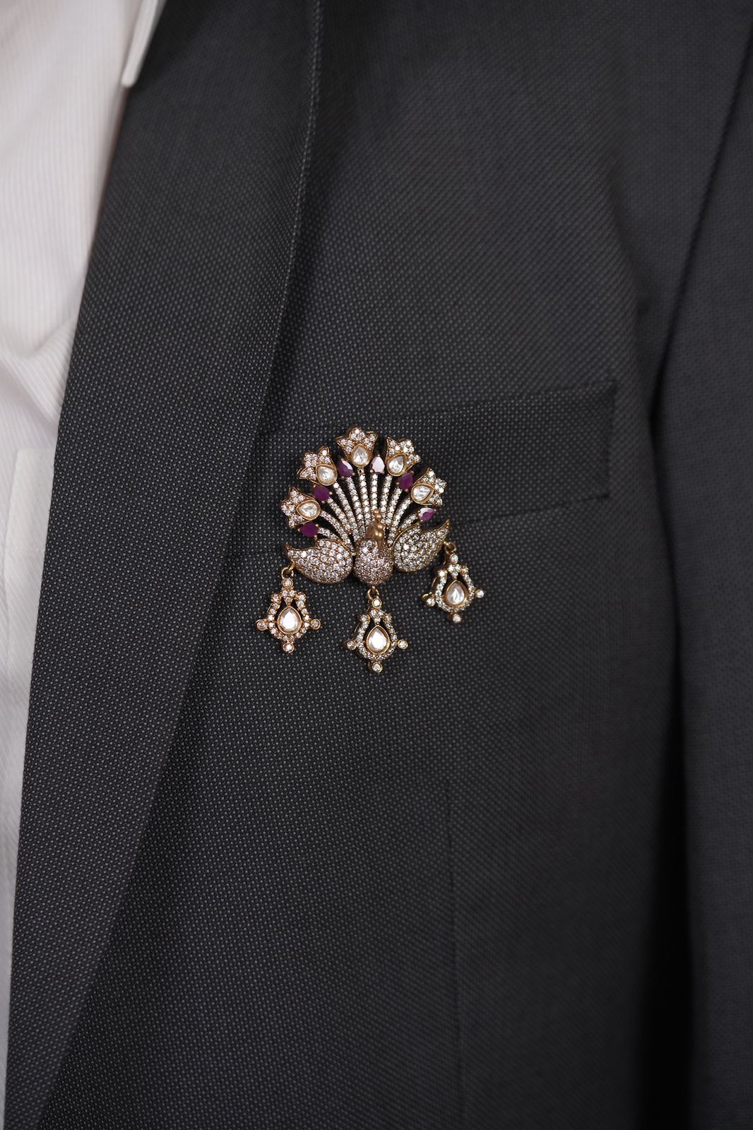 Singh Sahab Mor Diamond Polki Brooch | Unisex