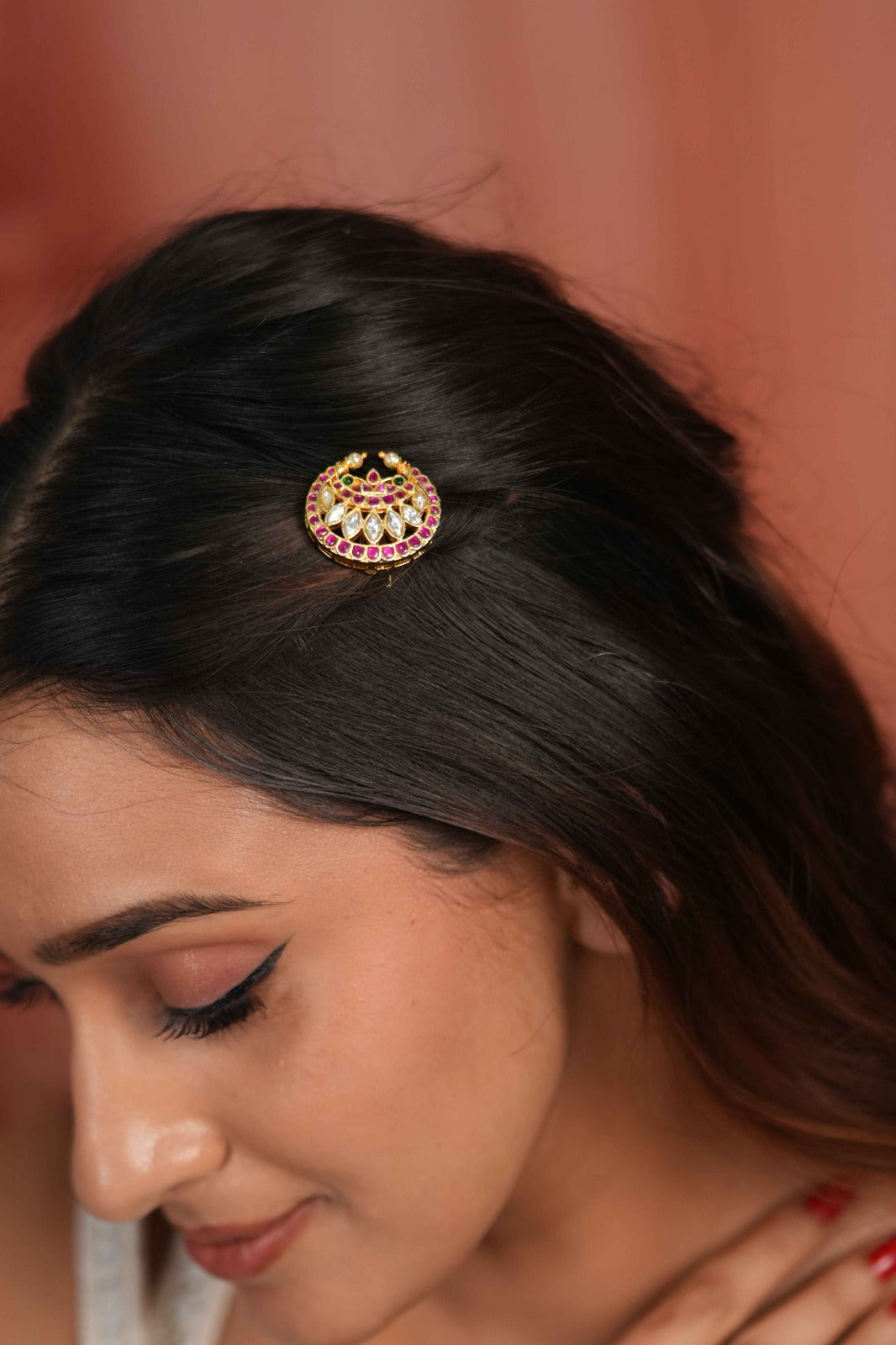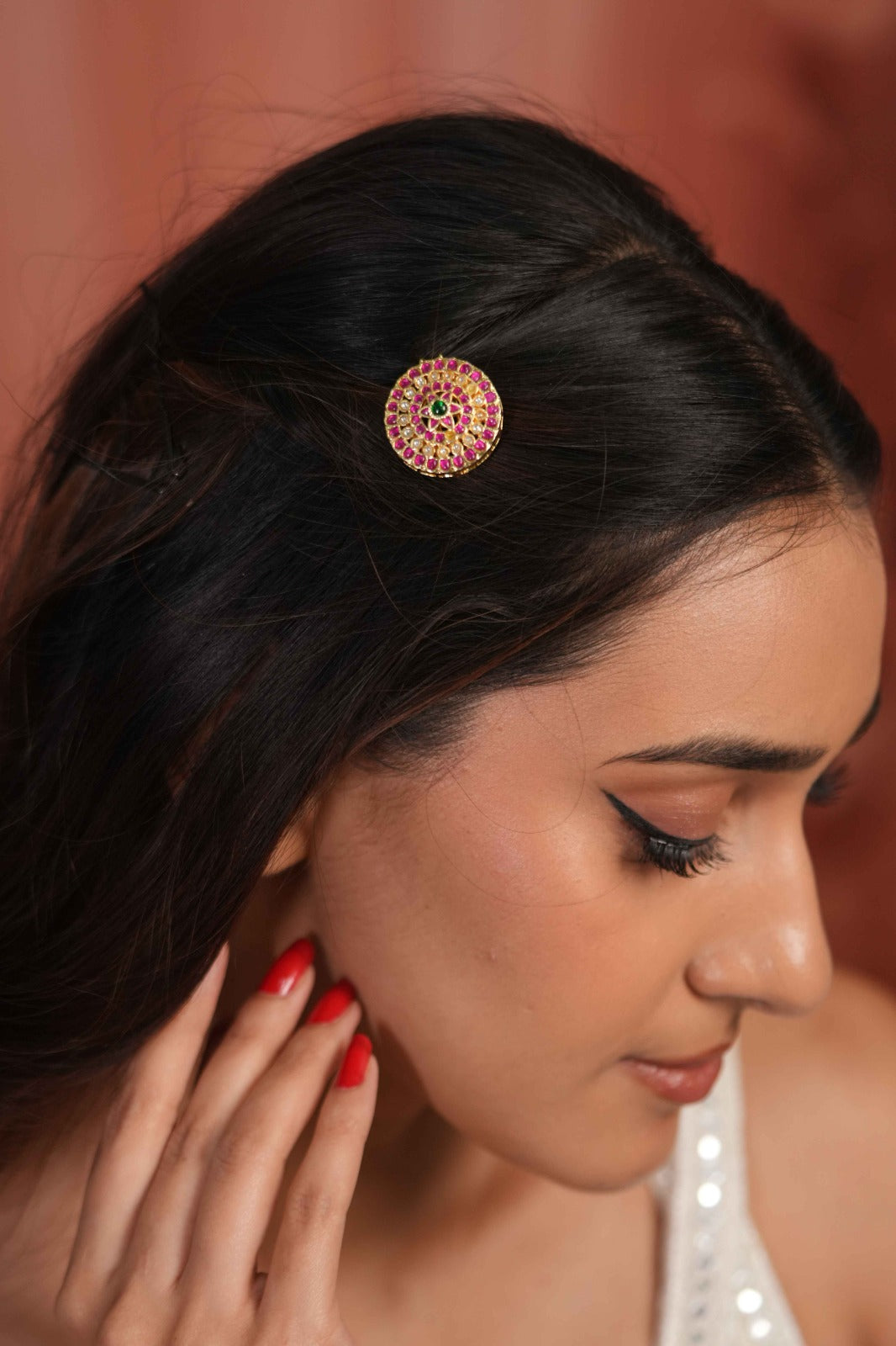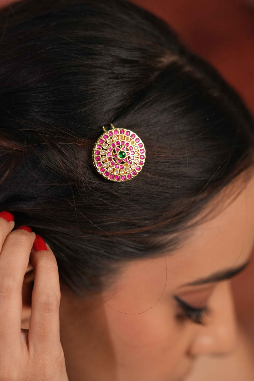 Surya Chandra | | Sun Moon Polki Red Green Hair Pin | Hair accessory